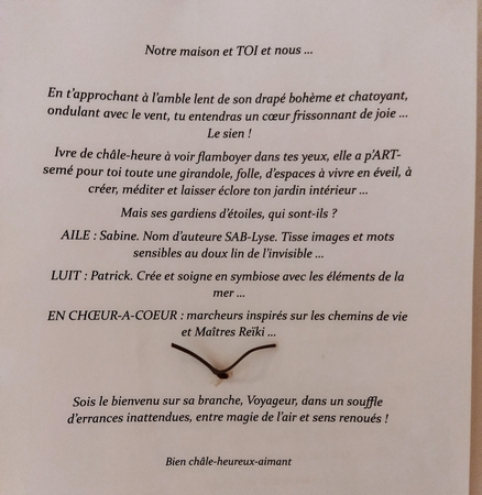 Baptisée « Encens- bleu », la cabane, câble-âme, des pensées mendigotes, chanteuses d’étoiles ...